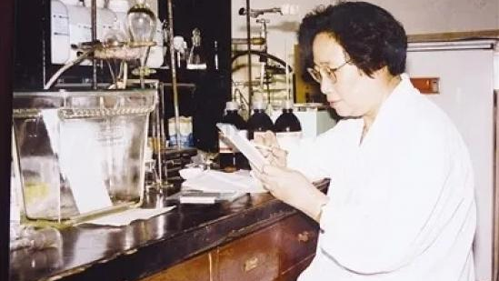 △屠呦呦在实验室工作